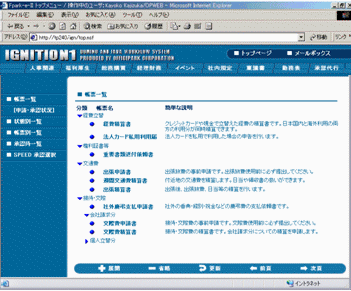■TOPフレーム ![]() ■旧FormParkシリーズのIGNITION1をリニューアル! WASとDominoの相性による不具合を一掃し、HyperDominoとして生まれ変わりました。 Webアクセスのパフォーマンスを大幅改善し、約1/2の応答速度(当社製品比)を実現いたしました。 ■Domino6.5に対応 Domino5.**からDomino6.5まで幅広くご利用頂けます。 ■ビュー画面 ![]() ■Webブラウザー/Notesクライアントの混在環境でご利用頂けます。 ■申請フォーム ![]() ■弊社既存製品をお使いのお客様へ 現在ご利用中の環境を新環境へ移植することが可能です。 ■新規導入をご検討中のお客様へ Notesの有効活用として、社内のワークフローを電子化しては如何でしょうか? 今なら60種類以上の実用的なサンプルフォームをセットでお届け致します。 |