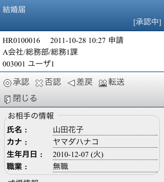 - 申請書の表示項目の設定を行うだけで、モバイル用の表示画面が作成できます。